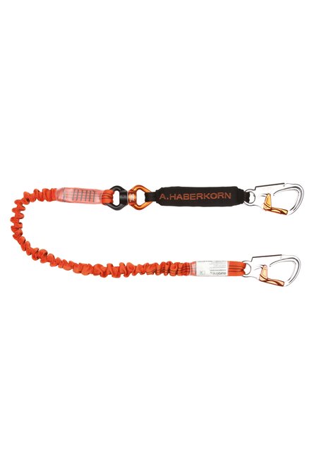 - Unteres Ende: AHK Einhandkarabiner, Drehwirbel SWIVEL, Bandfalldämpfer ARRESTER mit abnehmbarer textiler Hülle