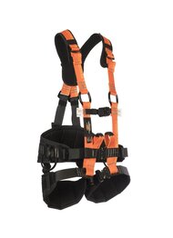 Durch seine textilen Ösen bleibt der Gurt leicht. Die Konstruktion ermöglicht es den Gurt wie eine Weste anzulegen.