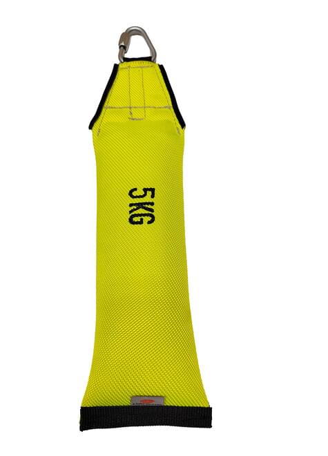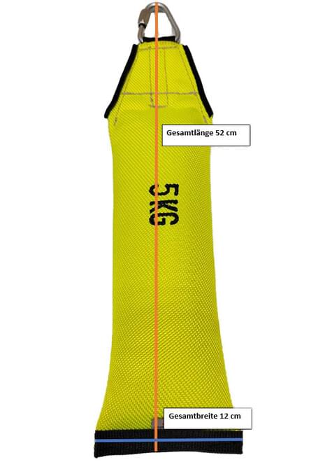 Aus robustem Schlauchmaterial, gefüllt mit Stahlgranulat (Ø 1,4 - 2,0 mm), mit eingenähtem Triangelschraubglied.