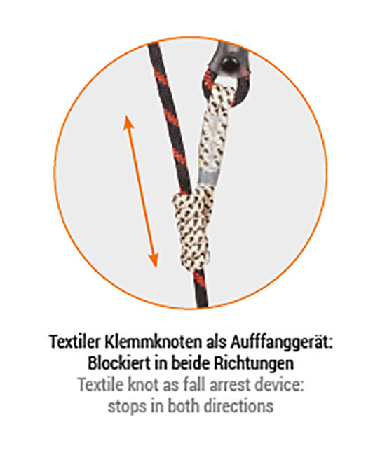 textilen Klemmknoten. Dadurch ist es leicht, anwenderfreundlich und sicher.