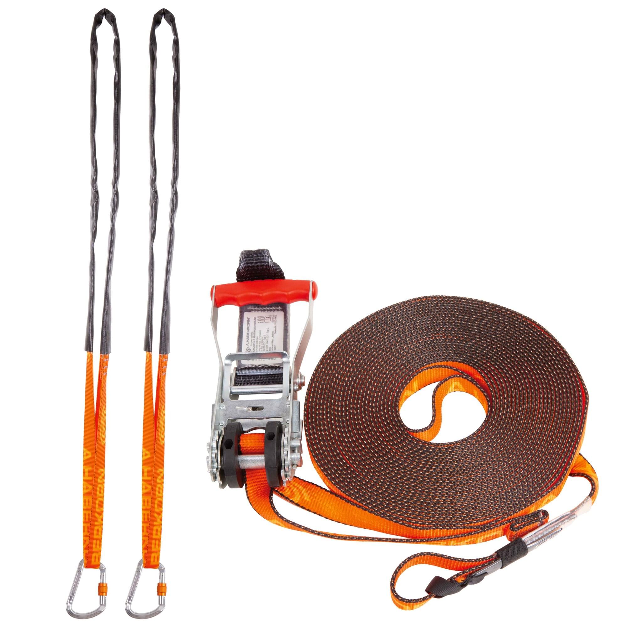 Die horizontale mobile Absturzsicherung aus PE Gurtband ist besonders widerstandsfähig und kann durch die integrierte Ratsche optimal vorgespannt werden.