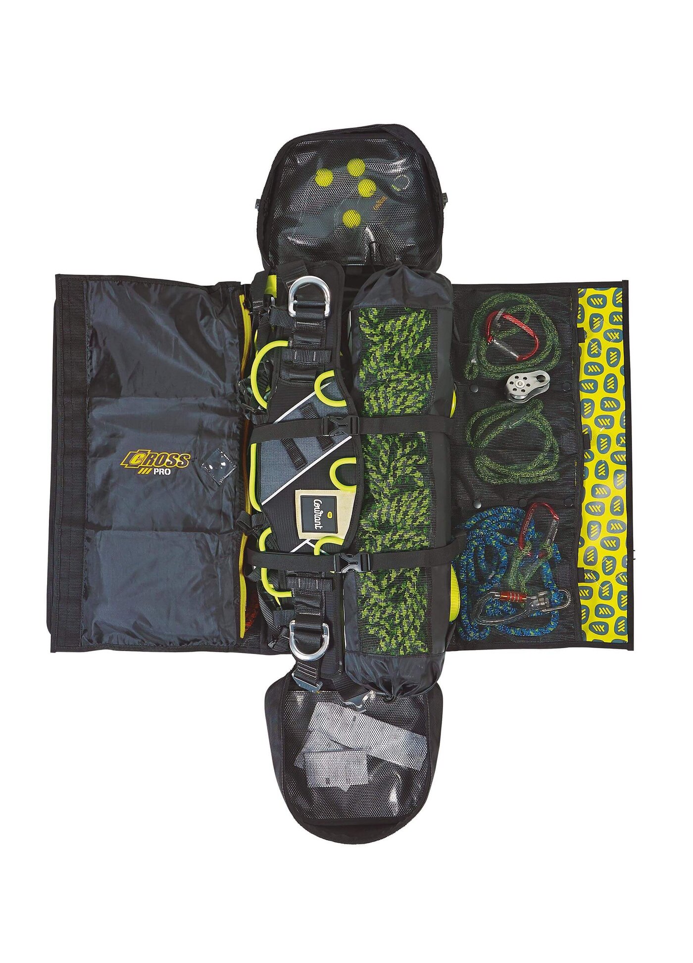 Tragesack für das komplette Industriekletter-Material, jedes Teil hat seinen Platz, unendlich viele Möglichkeiten Material zu verstauen und zu befestigen, robust und logisch aufgebaut.