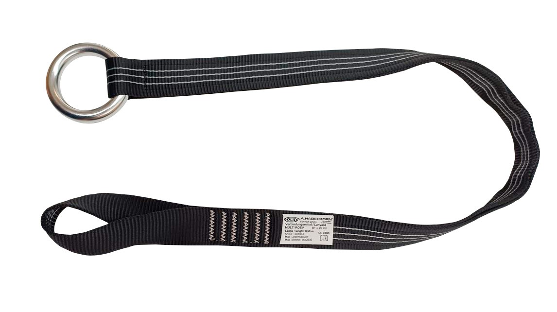 Das Verbindungsmittel Multi Röv ist aufgrund der Konstruktion der verdrehten Endschlaufe schnell und einfach direkt in eine Halte- oder Auffangöse eingebunden.