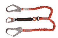 - Unteres Ende: AHK-Einhandkarabiner, Drehwirbel SWIVEL, Bandfalldämpfer ARRESTER mit abnehmbarer textiler Hülle