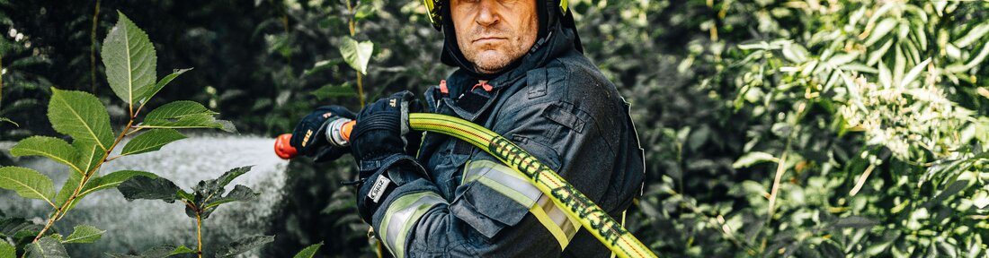 Producing a self-wetting and mechanically fully resilient hose is a major challenge. It is important to achieve high resistance with low weight and low consumption of water for wetting, as this is often the least available resource in forest fires.
