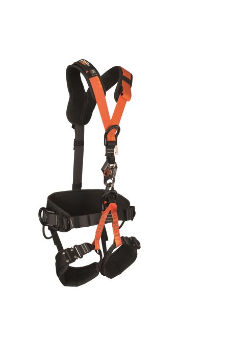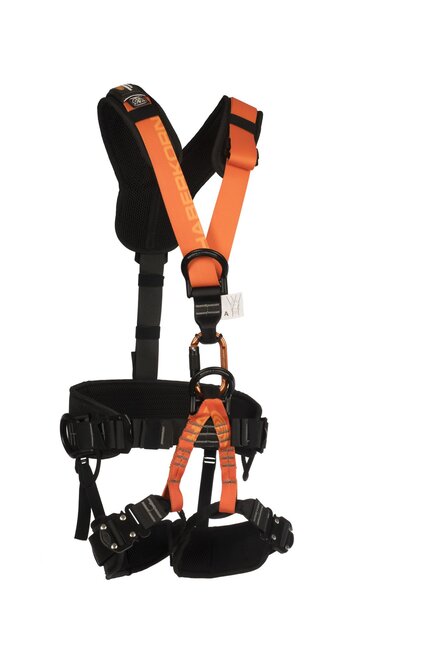 The harness for rope access GEO SALUS has been designed for hanging in a rope for long periods.