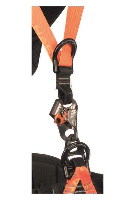 The permanently integrated chest ascender allows optimum ascent on a rope.