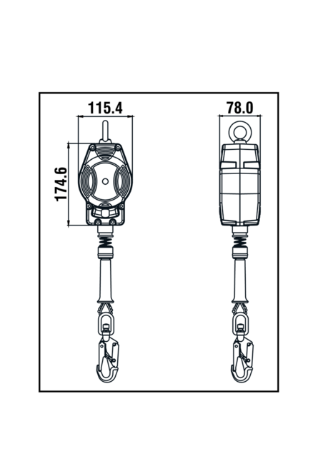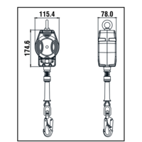RETRACTABLE FALL ARRESTER IN POLYMER CASING, GALVANIZED STEEL WIRE ROPE, 3,5M HELIXON