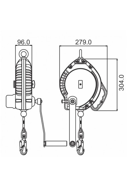 RETRACTABLE FALL ARRESTER IN POLYMER CASING, WIRE ROPE, 20M WITH INTEGRATED RESCUE WINCH