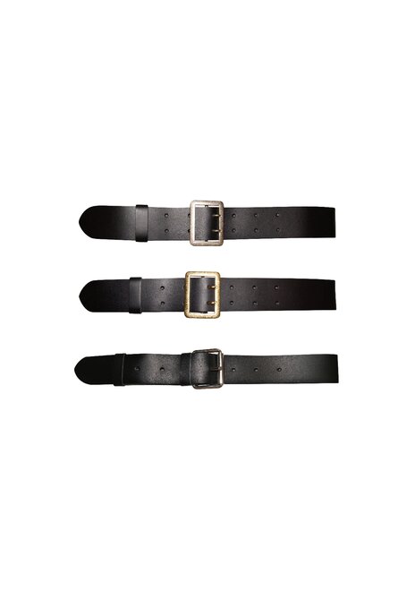 Black, buckles fixed with two rivets, perforated holes