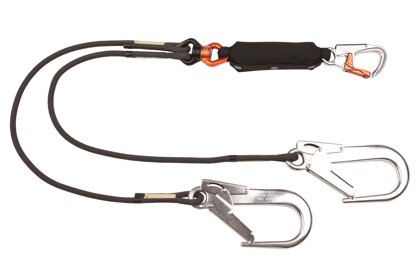 two-strand lanyard from heat resistant rope and shock absorber.